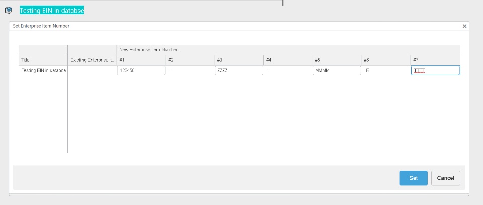 So when I use the function to define the EIN I have the following dialog box: