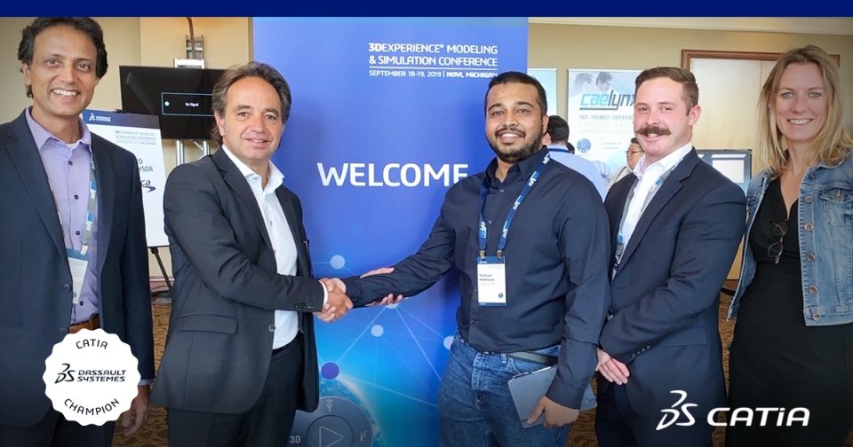 We are very happy to introduce you to our new CATIA Champion Shahaan Mansuri from Toyota. Shahaan was welcomed to the CATIA Champions Program by Tarik Chaib during the last 3DEXPERIENCE Modeling & Simulation Conference held in Novi, Michigan.