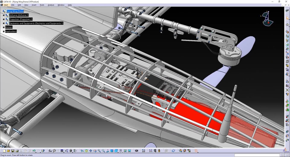 In our scenario here, after opening data provided by the Mechanical Engineer, the Electronic Engineer put in place the electronic equipment in the fuselage of the drone.