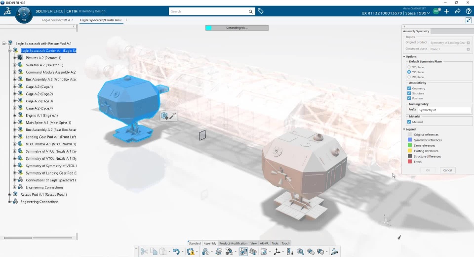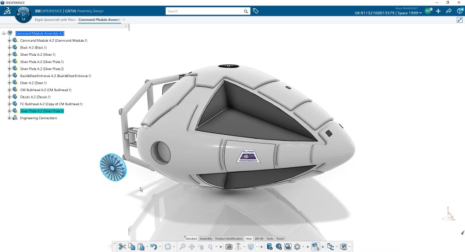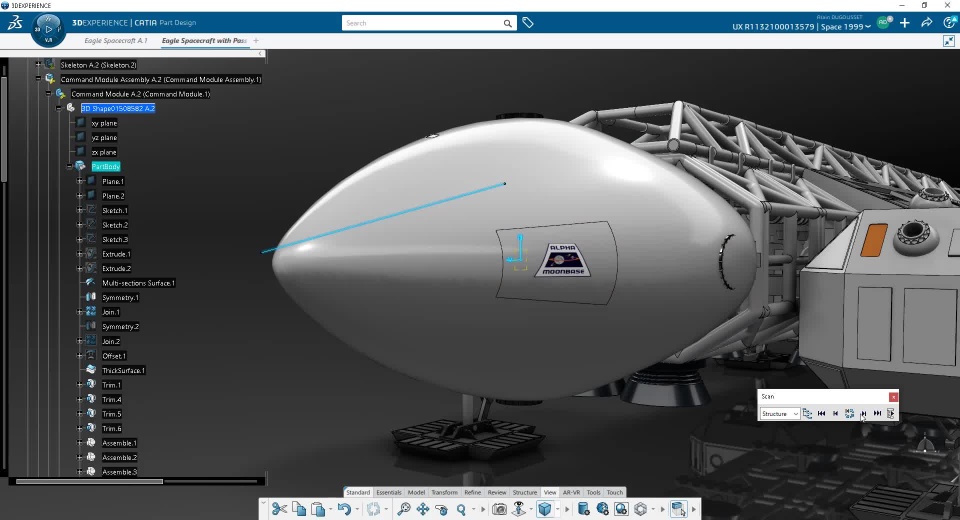 Of course, to create and manage the complete assembly of all the 3DParts composing this spaceship, I used Assembly Design capabilities, such as for instance