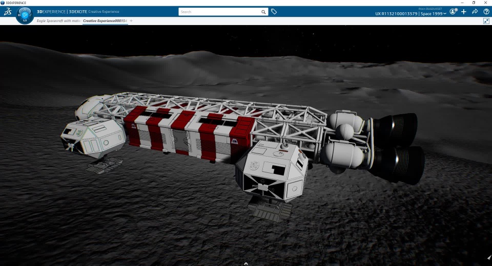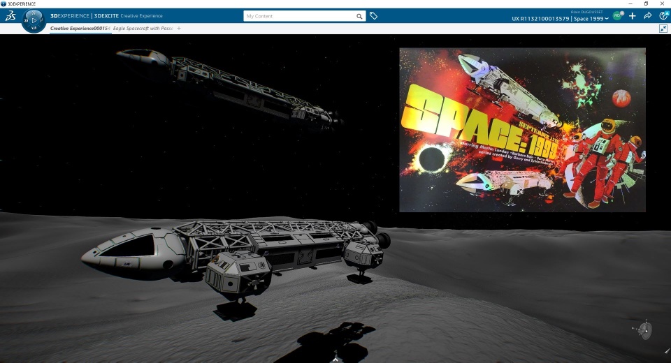 As a conclusion, I just would like to show you some examples of showcasing my Eagle spaceships on the Moon thanks to 3DEXCITE Creative Experience and Planet Studio Apps.