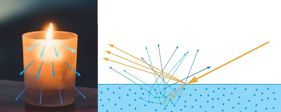 As shown in the figure, candles are typical of this kind of scattering. However, experienced readers must have noticed that this is not what we often call the Diffuse, but the so-called subsurface scattering (later called SSS)!