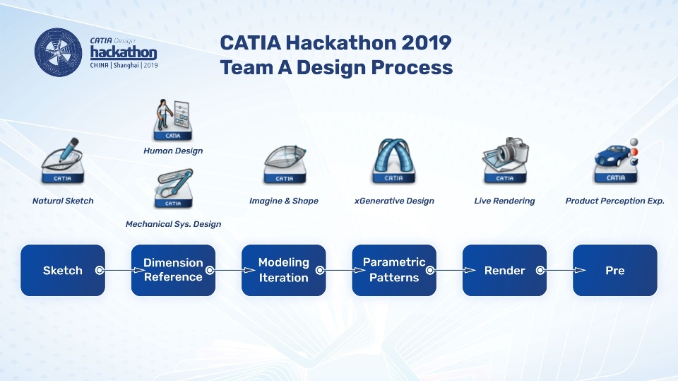 The first CATIA Hackathon in China attracted a group of car design players. In CATIA Hackathon, each team, with a configuration of "1 mentor + 2 designers + 4 modelers + 1 CATIA expert", was to complete a "Future Driving Experience" design within merely TWO DAYS, during which each team endeavored to advance the design progress and attain the design objective with innovation, quality, and completion. After the previous Team B article, let's take a look at the design concepts and processes of Team A.