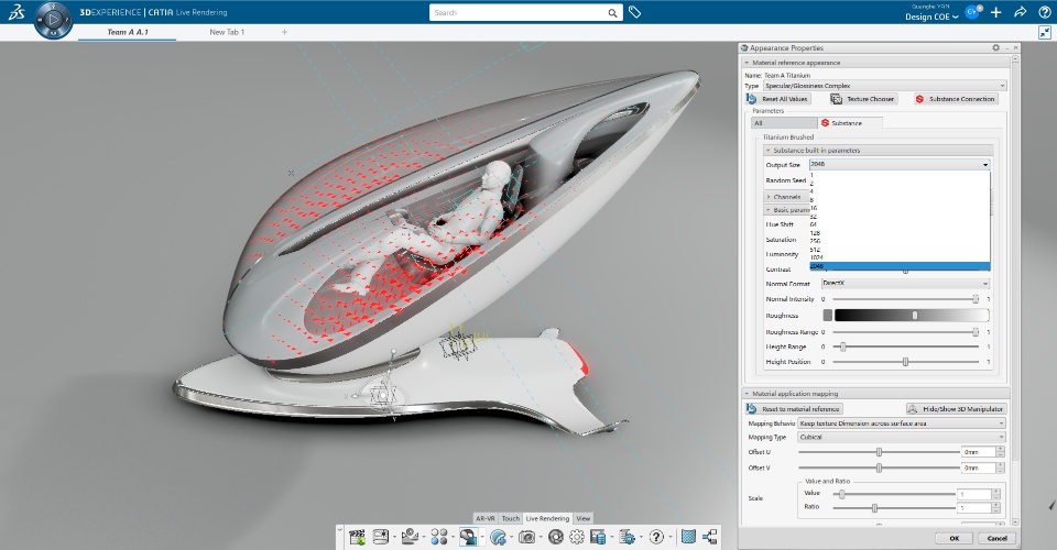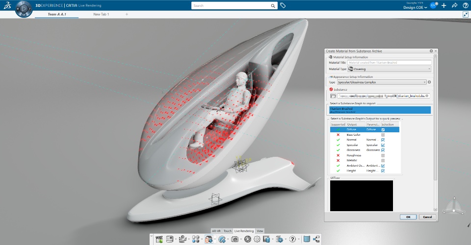 If we want to make a richer and more realistic material, we can also import Substance materials in CATIA. In the example of this article (i.e. shading SEC-X), most materials are Substance materials. On the basis of understanding Complex material, we will also see how to use and adjust Substance material in CATIA to acquire visual attraction and plausibility of a higher level.