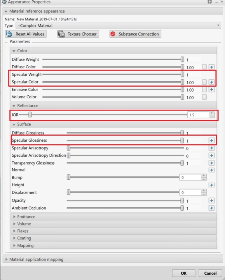 3. Adjust Specular Glossiness and Diffuse Glossiness according to visual effects, maps, or physical data