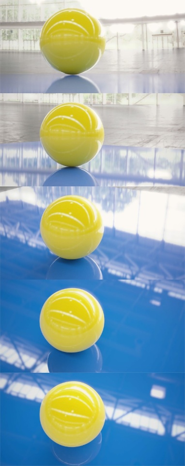 You can see that from top to bottom, as the sight direction is more and more perpendicular to the blue plane, the reflection of the yellow ball and the environment on the blue plane are getting weaker and weaker.