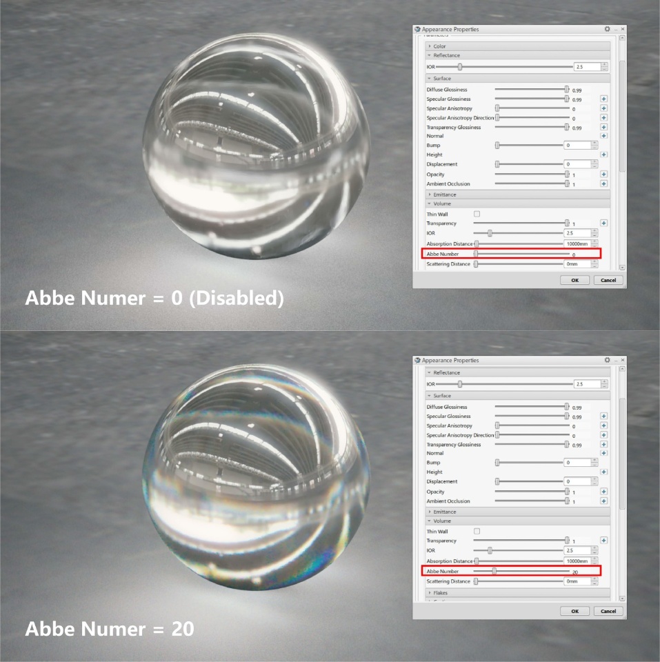 In addition, among the common non-metallic materials, only gems' IOR > 2. At this point, we can try to add some dispersion through the Abbe Number: