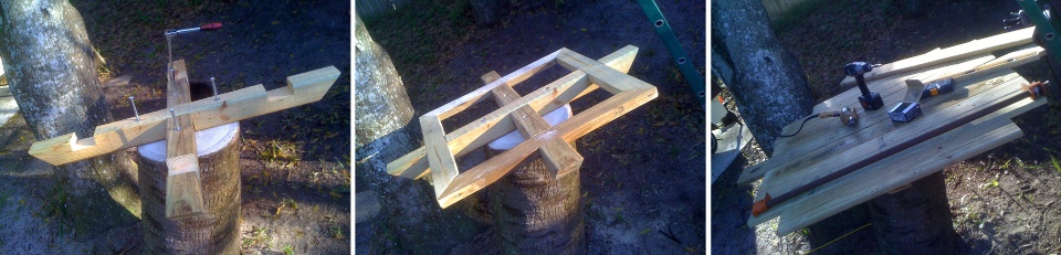 Then a bit of drilling and assembly. NOTE that I sealed the top of the tree stump with some fiberglass resin but only because it was what I had in the shop. A good coat of paint would have probably sufficed.