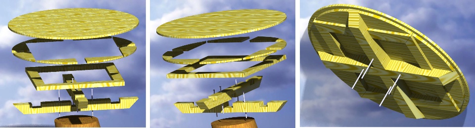 A palm tree dies. What to do? How about a stump table? Of course it needs to be in the right place which this one was. I had a CAD related demo to do the following week in CATIA V5 so this was a good excuse to remember how to use that system AND make something outdoors. I had no pressure treated lumber for the project so besides the design, I wanted to reduce the trips I needed to make to Home Depot.