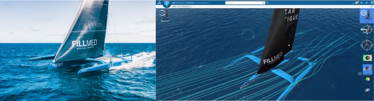 MerConcept’s 3D model of SVR-LAZARTIGUE is a true virtual twin of the physical boat, available in the cloud. This virtual twin is a physically accurate 3D model of the trimaran and its systems viewed in the context of its environment at sea through simulation. It allows the team to virtually design SVR-LAZARTIGUE, complete with all system behaviors, and test it in limitless scenarios.