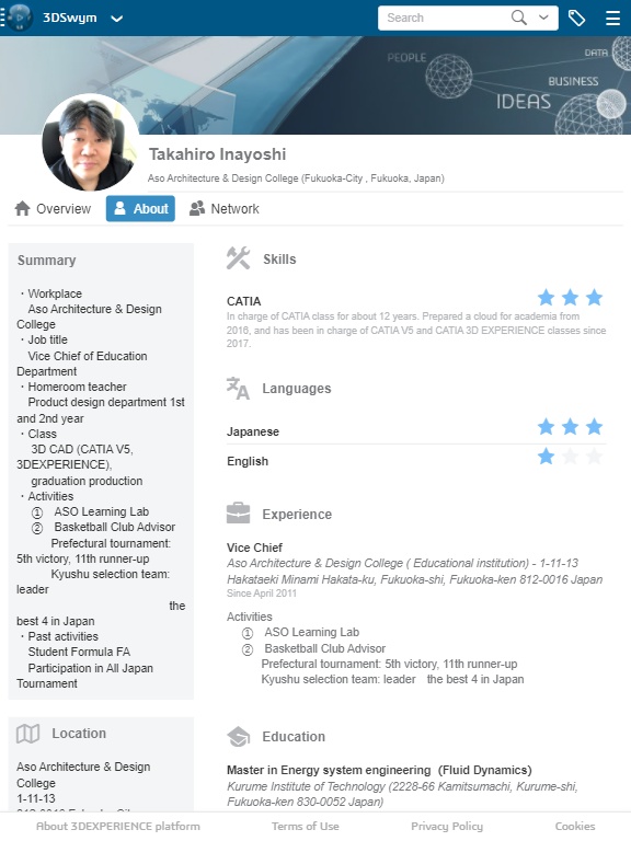 The CATIA Team is very pleased to introduce you to Professor Takahiro Inayoshi (@TI) , who has joined the CATIA Champions Program a few weeks ago. Professor Takahiro Inayoshi is Dassault Systèmes’ most prominent and active Ambassador in Japan’s Academic world. He is the Lead Professor of one of the most innovative CATIA 3DEXPERIENCE Customer in Japan (ASO Design & Architecture College). He is a passionate teacher, with a mission of providing to his students the best skills and the best tools. He also used to be the leader of the Student Formula group in the ASO school. Thanks to his efforts, ASO Architecture & Design School was awarded Dassault Systèmes’ Advanced Academia Member. In 2020, Takahiro Inayoshi was able to cope with the COVID crisis by redeploying, within just a few weeks, the full 1st year CAD curricula from CATIA V5 to 3DEXPERIENCE. He already is a valuable member of the CATIA User Community, via his latest contributions.