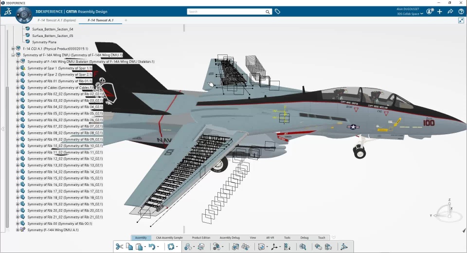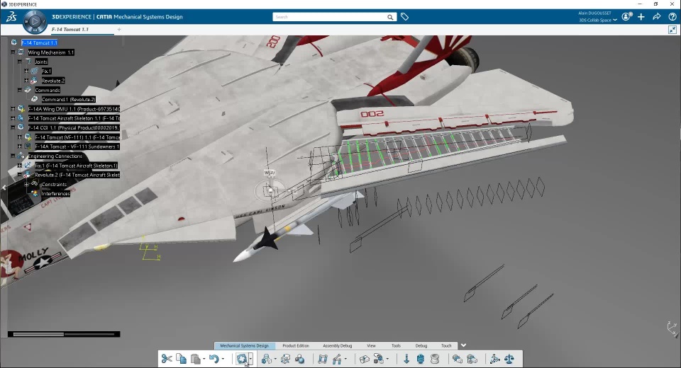 And, taking here advantage of the fact that the Grumman F-14 Tomcat was a variable-sweep wing fighter aircraft, I do not resist the pleasure to show you how easy and powerful it is in CATIA 3DEXPERIENCE platform to use the Relational Design approach to define and/or modify Parts and Products in several positions.