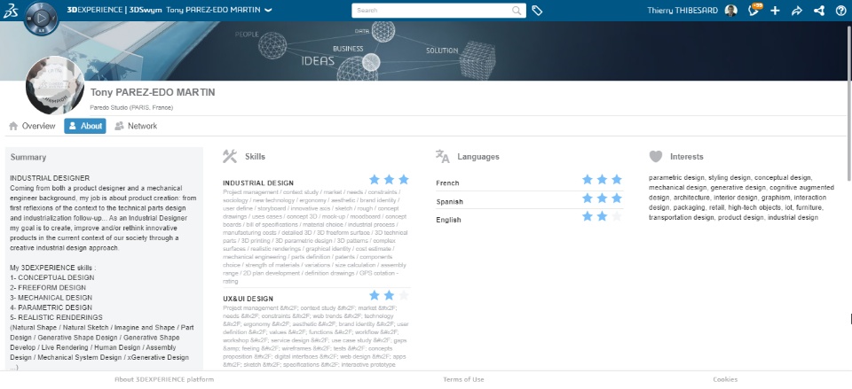 Today, Tony's studio helps startups and companies to build effective and rational strategies for innovative and emotional products. Pushing innovation from ideation to final production, Paredo Studio thinks, creates and optimizes the right curve, shape, product and experience for people and the planet. Inspired by contemporary lifestyle, new technology and biomimicry, he used the 3DEXPERIENCE platform for "3D Concept & Styling", "Patterns & Parametric Design", “VR & Renderings” or “Mechanical & Assembly Design" in order to address social and sustainable inovations in the current context of our society.