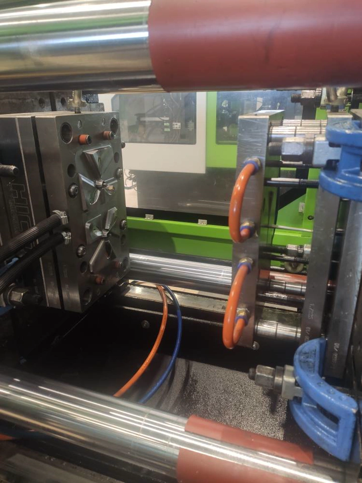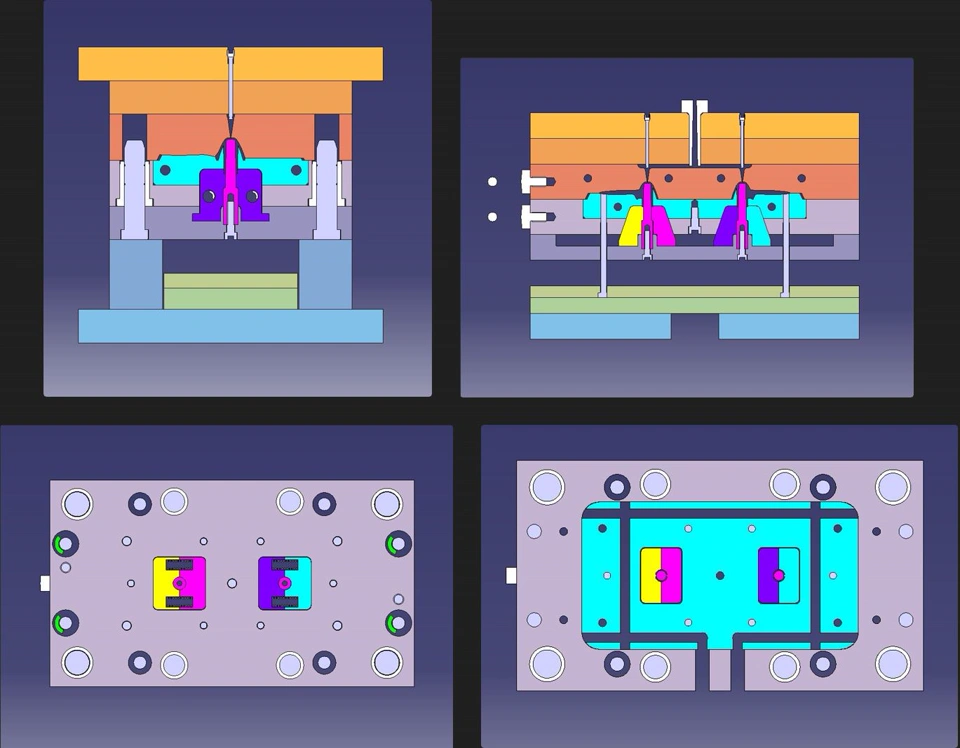 🔹 Mold features: 3-plate mold design with an internal side-action mechanism and under the core plate slider, designed to handle undercuts and locking features at the bottom of the part (as shown in the images)