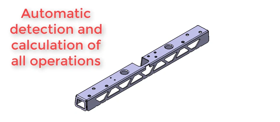 It also automatically calculates and creates the welding of Parts & Assemblies based on specific algorithms, materials, clashing, types, etc., and surface treatments (painting, coating, sandblast, etc.).