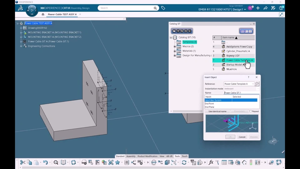 Please watch the attached video for an example. After creating the Engineering Template, the end user selects the positions of the cable ports and the rigid cable ends in these ports, with the deformable cable component geometrically repositioned (as a deformed variant) between them.