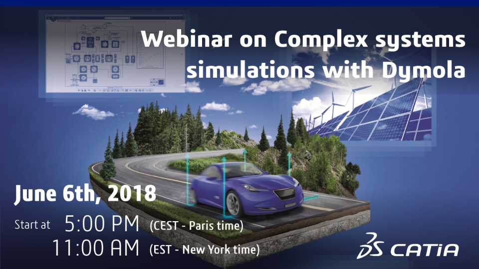 Register for the CATIA Live webinar on “Complex Systems simulations with Dymola” on June 6th, either at 9:30 AM or at 5:00 PM (CEST - Paris time), meaning 11:00 AM (EST - New York time).