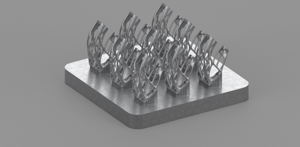 - from optimizing the design to Additive Manufacturing (create a shape stiff enough but with the minimum of areas to be supported)