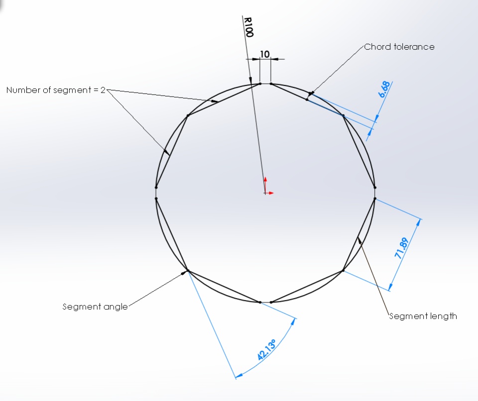 - Chord tolerance- specify the max distance from arc and linear segment