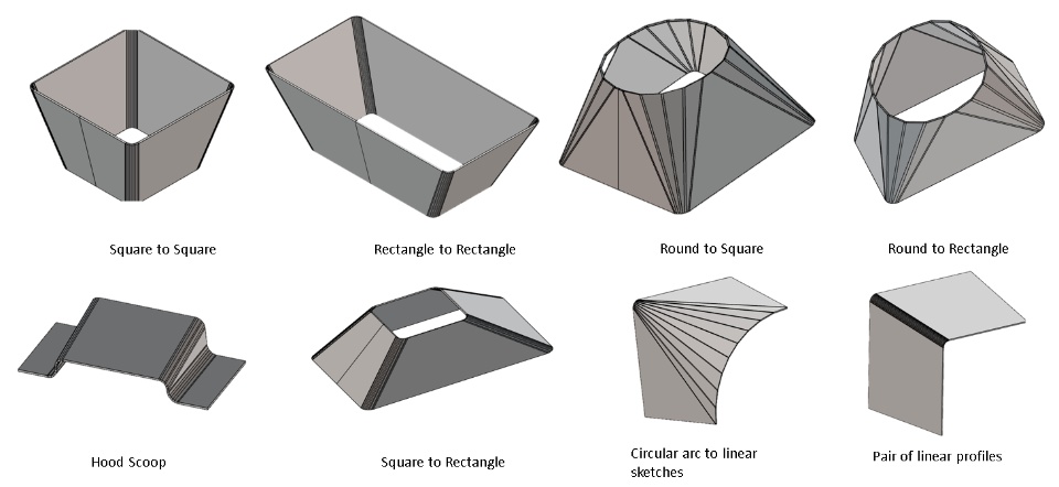 Sheet Metal Designers can now leverage the creation of lofted bends within the CATIA Sheet Metal Design workbench. This feature is available inside an existing hopper feature. The bent lofted bend feature accepts either an open pair of profiles or a closed pair of profiles. The input profiles may lie on a parallel plane or a non-parallel plane.
