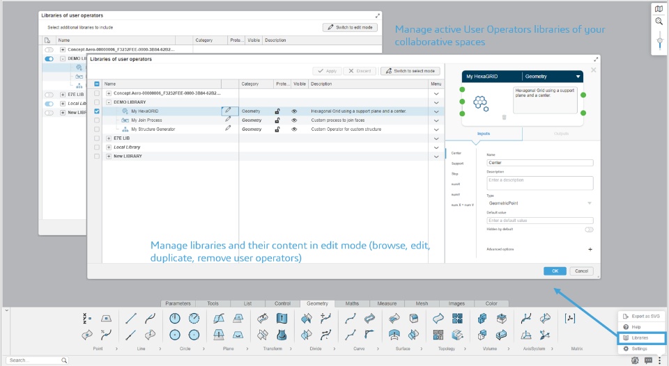 new capabilities and dedicated interface to manage your libraries of User Operators (duplicate, remove, re-edit user operators from libraries)