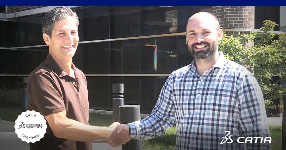 Today, we recognize Zach ELY (@ZE) as a new CATIA Champion! Zach (on the right) works for Calty Design Research as a CAD Modeler. He was welcomed by Gerard Alcini (@GA , Dassault Systèmes) a few weeks ago. Welcome on board Zach!