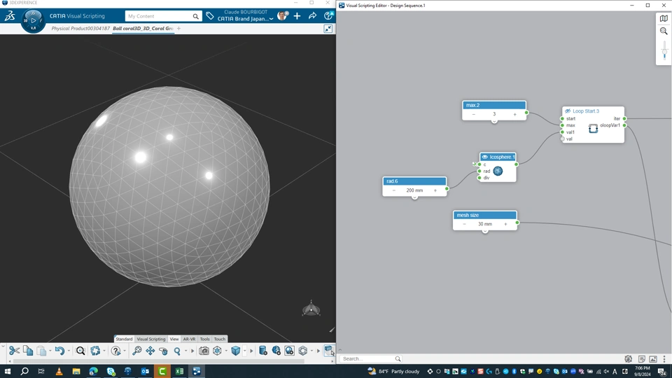 I want the sphere to grow, following the same logic as for the curve and half sphere curve boundary.
