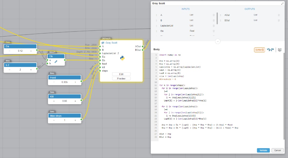 Seriously! This post is about how to model a reaction diffusion in CATIA with Visual Scripting. within all the reaction diffusion models, the 1st to make a try is the Gray-Scott model. I won't go deep into philosophy, yet, after this post, I hope you can do it for yourself an enjoy the results as much as I did...
