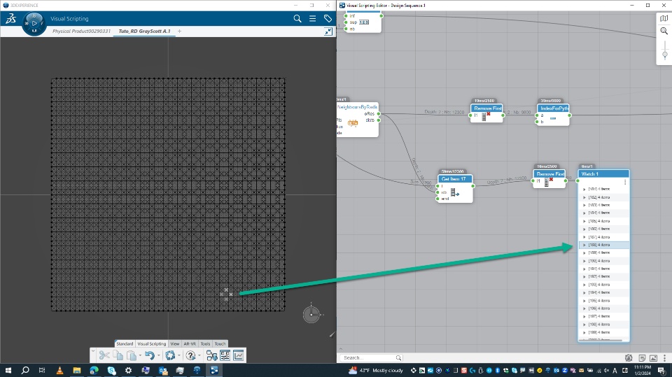 7. I decrease of 1 all the numbers in the previous list, because in Python script, the indexation of a list starts at 0, while in Visual scripting list, it starts at 1.