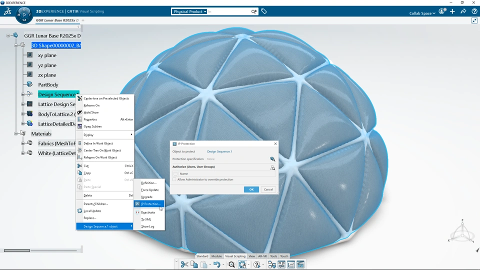 - In CATIA Visual Scripting, you can now display the Experiment and Monitor panels by simply selecting a design sequence in the tree. Opening the design sequence in the editor is no more required.