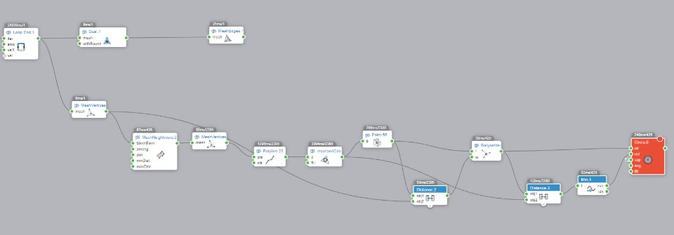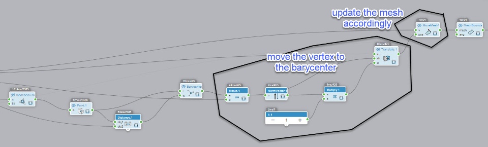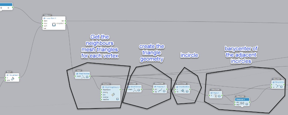 - for each vertice of the mesh, calculate the barycenter of the incircles adjacent to the vertice.