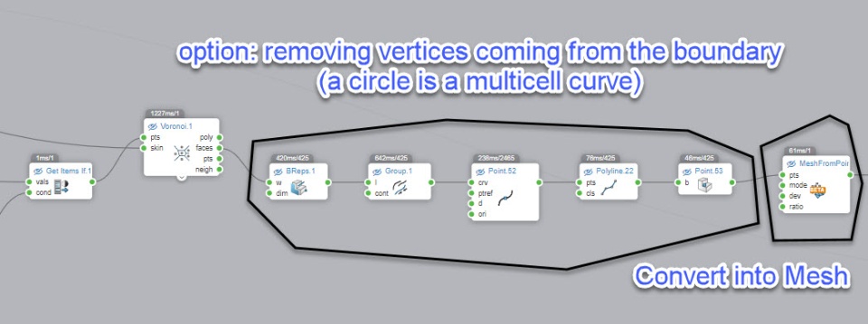 The Voronoi pattern is converted into a Mesh. This mesh will be the base for the relaxation.