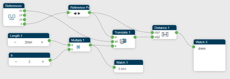 It can be surprising to discover that 1mm multiplied by 2 returns 0.002. But don’t worry, conversion from Real to Dimensions also uses mks units so using this 0.002 for an extrusion will produce a 2mm extrusion. The same applies for angles which are displayed as deg while mks is rad.