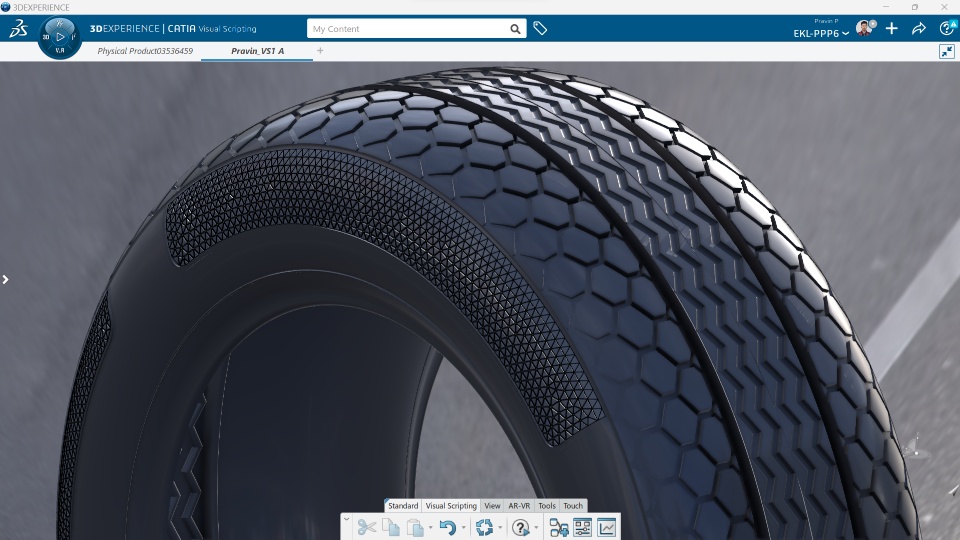 Here I would like to share my first tyre side wall design using CATIA Visual Scripting. Amazed by the visual scripting app - love this!