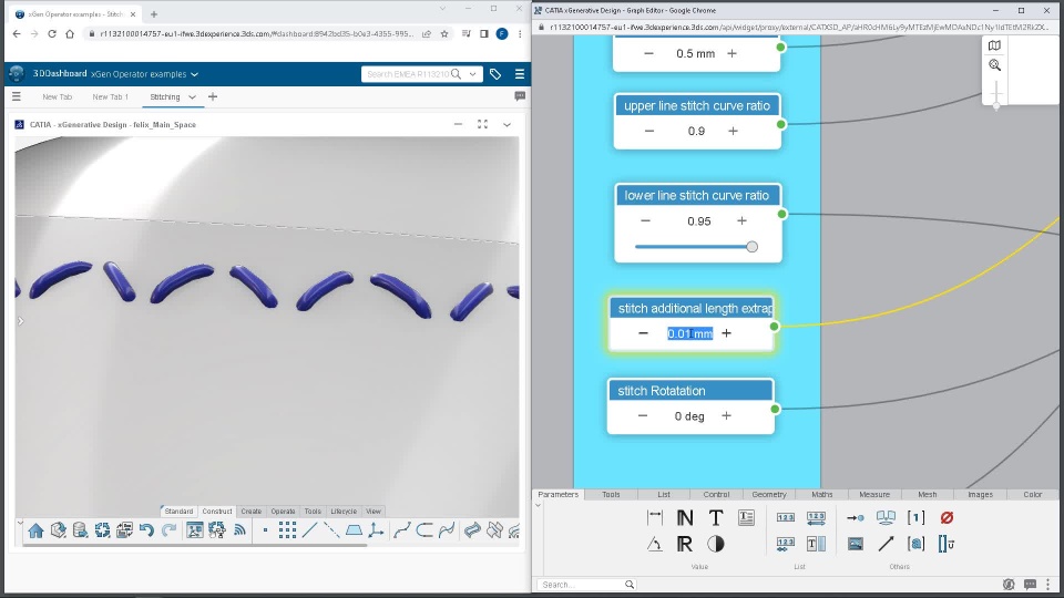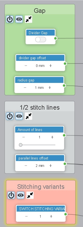 here I created a very nice stitching preset. It has a lot of possibilities to influence the stitching result with multiple parameters to create lots of different variants. I.e. double lines, folding gap, cross stitch, zigzag stitch etc.
