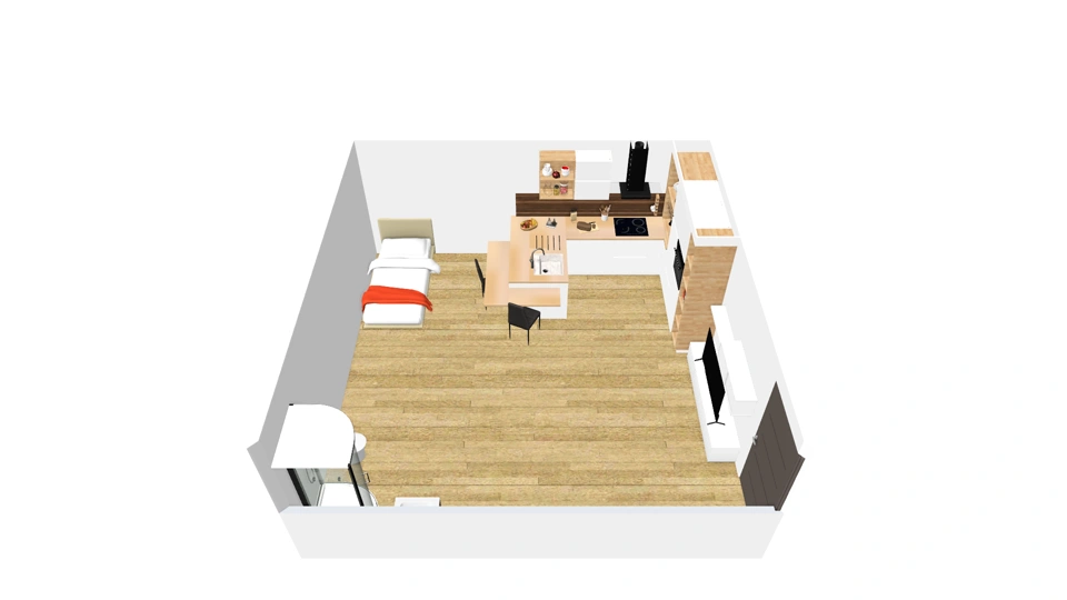 Le but de mon défi était de réaliser une pièce habitable contenant tous ce dont nous avons besoin pour vivre. J'ai même réussi à caler un meuble télé 🤣. J'ai pris un carré en XL et je n'ai pas touché aux murs. La prochaine fois, j'utiliserai une taille M.