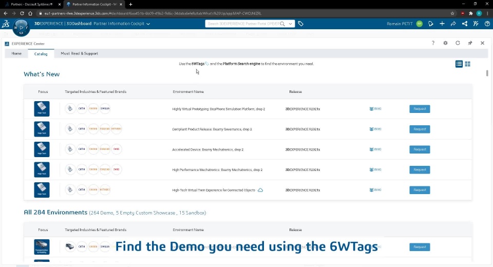 After that, you will be able to find the demo you need and request your own environment.