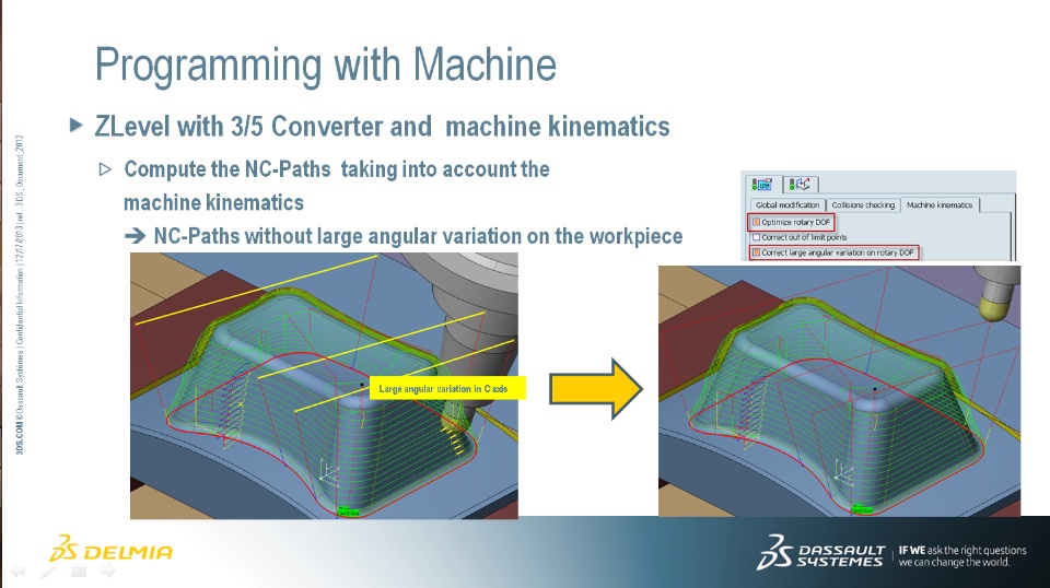 - Compute the NC-Paths taking into account the machine kinematics NC-Paths without large angular variation on the workpiece,