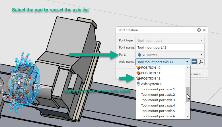 It is very powerfull when you have to select several axis to define several ports (like lathe turret)