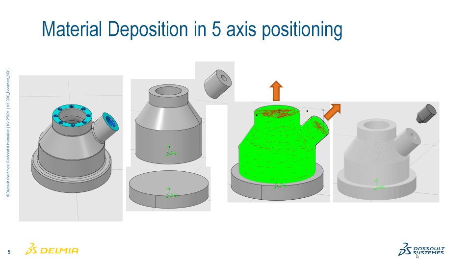 It is now possible to define slicing operation in 5 axis positioning mode to produce this kind of part.