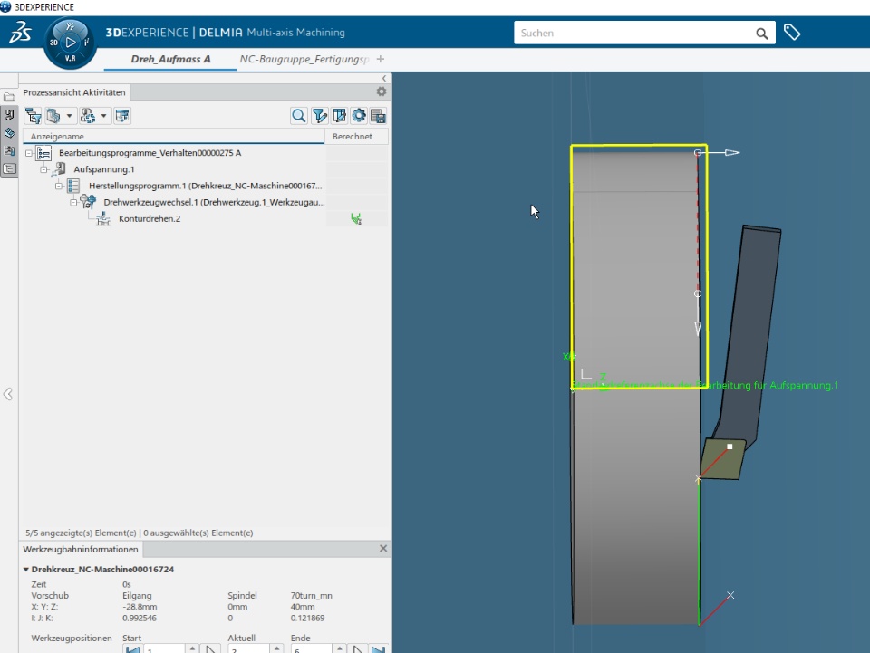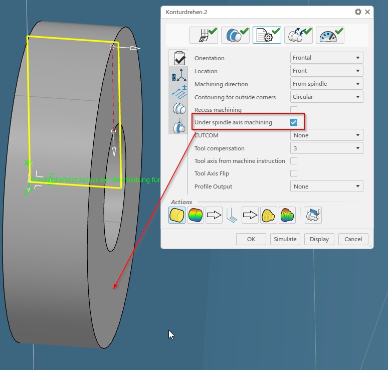 If we do a turning operation under the spindle axis, then we want to see the intermediate stock and the turning geometry as well under the spindle on the same side.