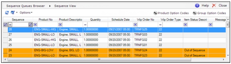 | Sequence Planning screen | create production Sequences based on the daily demand from an ERP or APS (validates the sequence that the user creates against user-definable and extendable business rules) |