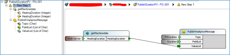 - “Apriso Message” Function to “Publish” the values coming in from machine via OPC layer; an example below: