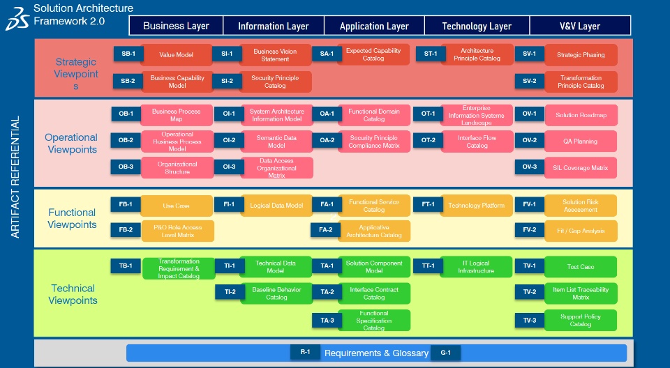The current 3DS Solution Architecture Framework is based on The Open Group Architecture Framework (TOGAF). Did you know that in the next version, we have added the "Verification & Validation Layer" and also adapted some of the viewpoints from Unified Architecture Framework (UAF)? And we are also adopting the use of Cameo Enterprise Architecture from CATIA. This really takes the Solution Architecture in DS Value Engagement to the next level in terms of collaboration and also one-click generation of Architecture deliverable in Value Engagement.