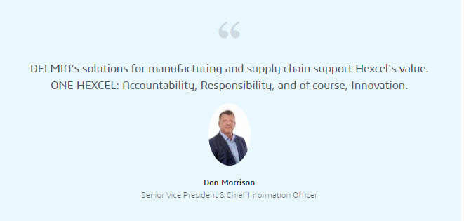 DELMIA enables Hexcel to rapidly analyze customer demand and utilize the supply chain more effectively to meet customer needs. On the shop floor, it provides detailed process plans, offering step-by-step instructions for workers and allowing data collection throughout the production process. This includes validation of materials used and a digital thread of materials produced; ensuring Hexcel maintains high quality standards and employee safety.
