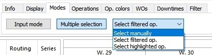 For this example, we will use Select filtered op. (details about the other Multiple selection types and using the Filter functionality within the Planning module can be found within the online help of the software). Using Select filtered op. enables you to select all Operations or WOs that you have previously filtered.