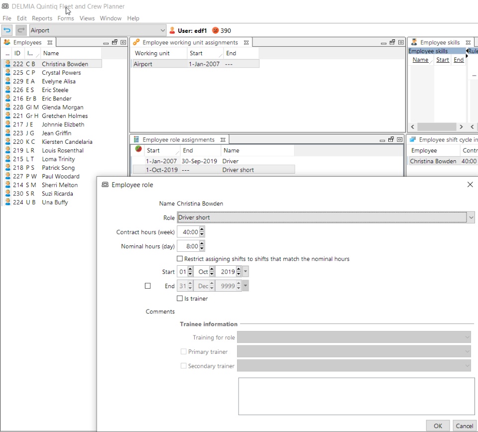 - In the planning client in view 14 Manage employees you can assign an employee to the new working unit role from any desired date as shown in the screenshot below.