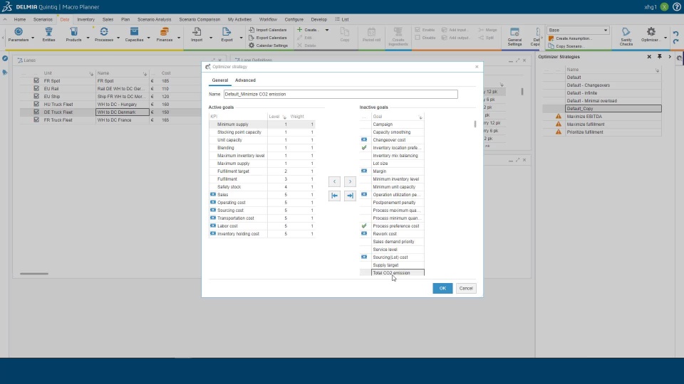 The product now includes a KPI CO2 Emissions, next to the existing configurable KPIs on financial and operational criteria. This allows you to quantify environmental impact, make this part of the planning trade offs during the planning process and report on it in the KPI dashboards.