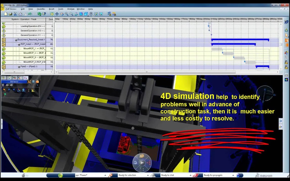 See video ( 4min40) below, to understand The 4D Planning Simulation in V6 Platform: