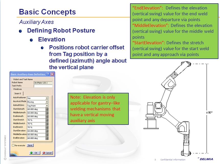 A vertical measurement measured (parallel to z-axis) from the base of the robot to the TCP (at each tag point). Elevation definition is used with Stretch (defined below) when you have a 3 axes setup (typically overhead gantry). So it defines the vertical placement of the robot base from each tag point.